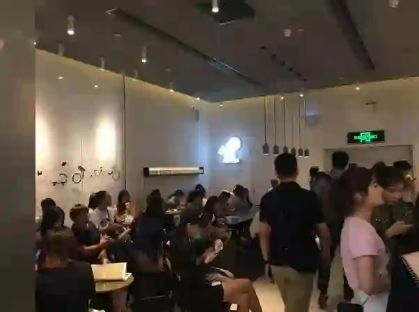 喜茶(上海人广来福士店),店内休息区坐满了人