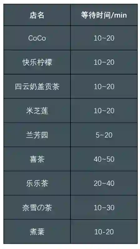像CoCo、快乐柠檬这样的街头奶茶店,在国内,排队时间一般都在10-20分钟左右。因为街边奶茶的特点就是便捷,如果排队时间过长,会降低顾客的购买需求。这些奶茶同质化太严重,并没有哪一款产品是不可替代的。
