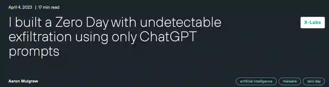 来自网络安全组织 Forcepoint 的 Aaron Mulgrew 便想要抱着测试「规避 ChatGPT 现有不足的安全防护有多么容易」和「在不编写任何代码且仅使用 ChatGPT 的情况下创建高级恶意软件是多么容易」两个目的,看看 ChatGPT 在安全方面的成效究竟如何。