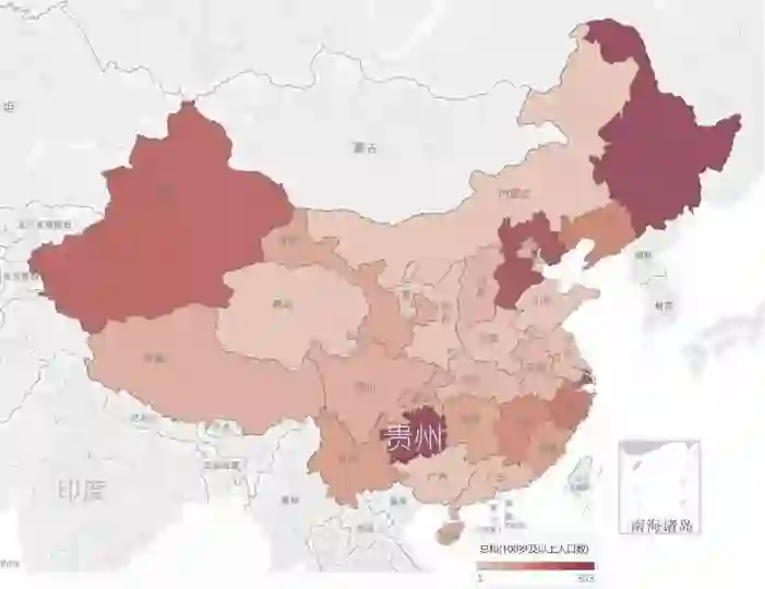 黑龙江,吉林两省老龄化严重,可能是老工业衰落,人口流出,天气较冷降低了人口出生率,河北居高,多半可能是北京养老迁入。四季如春的贵州自然宜居的自然条件功不可没。