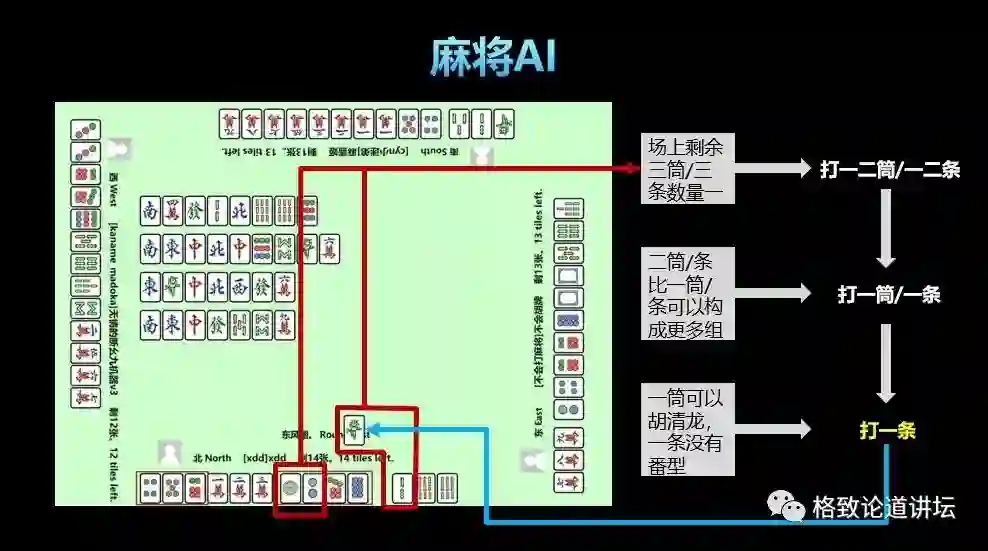 所以它相对于德扑来说难度会更大,因为它的不完全信息程度更大。我们打一轮麻将通常要几十个回合才能完,所以它的决策过程也更复杂。