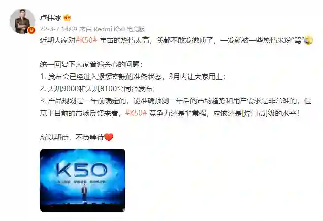 Redmi K50 确定 3 月发布