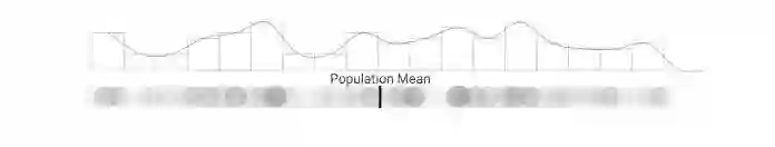 假设我们可以从团体中采集多个样本。虽然这种做法在现实中是客观存在的(尤其是在政治民意调查中),但在这里,我们会更多地将其作为一种解释工具(当你进行重复采样时,实际上会有一些意料之外的因素出现)。对于每个样本,我们在每次采样时都跟踪样本均值与整体平均值的差。