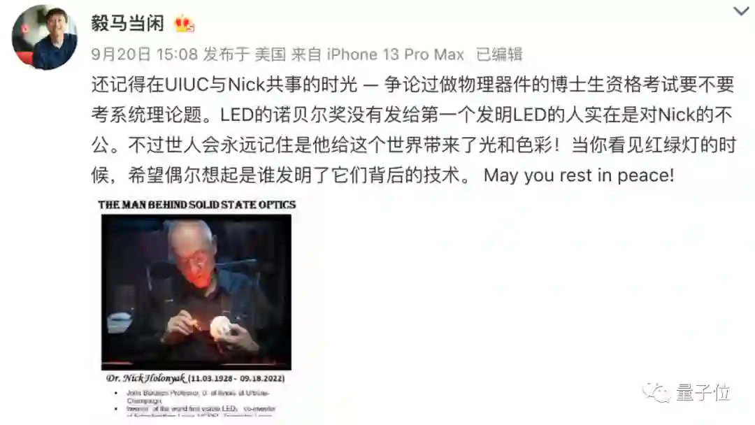 然而,如今随着他的离世,诺贝尔奖理论上与Holonyak再无缘分,这一奖项原则上“只颁给在世的科学家,激励他们继续做出贡献”。