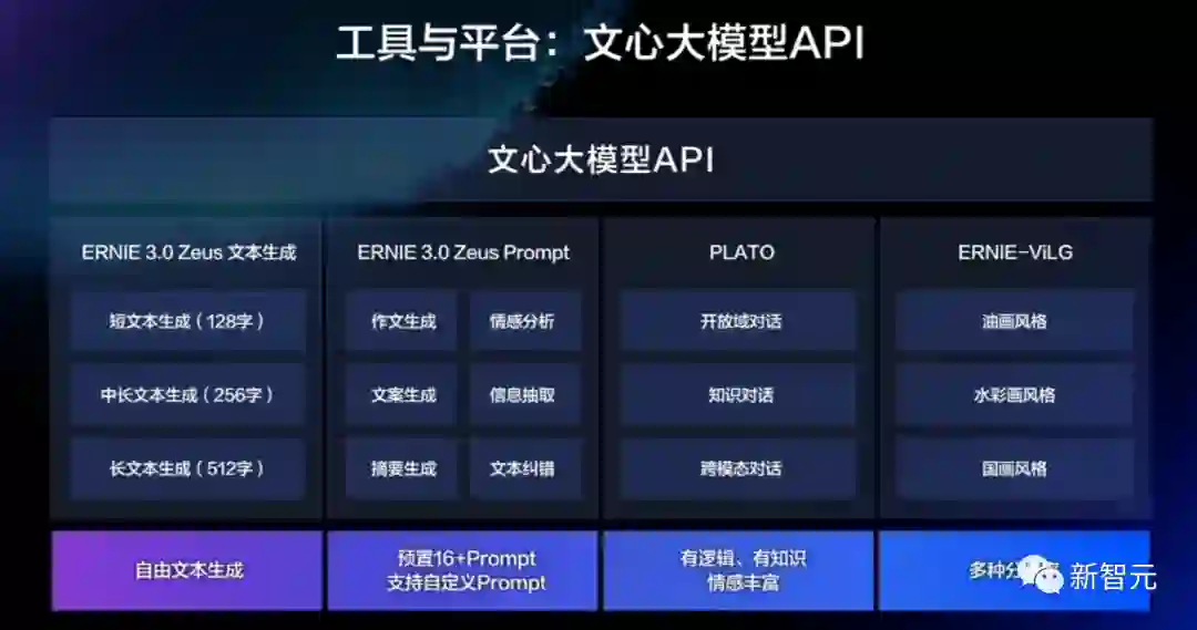 目前,ERNIE 3.0 Zeus、PLATO、ERNIE-ViLG都可以供使用者通过API直接访问调用。