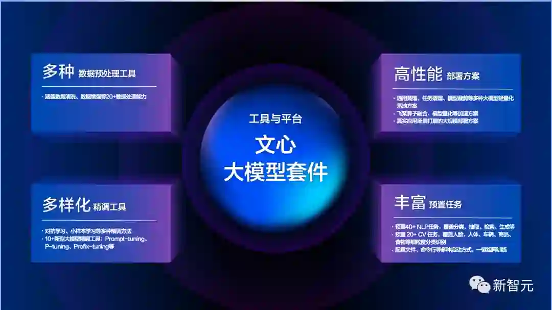 为了尽可能地实现这个目标,本次百度与10个大模型一同发布的,还有一套全方位的工具和平台,包括大模型开发套件、大模型API、内嵌了大模型能力的EasyDL和BML开发平台,面向不同类型的开发者,全面释放大模型的使用效能,进一步降低应用门槛。