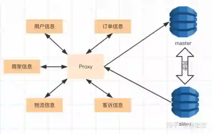 随着业务增加,单个DB是无法承载这么多请求的。于是就有了主从复制、读写分离的解决方案。
