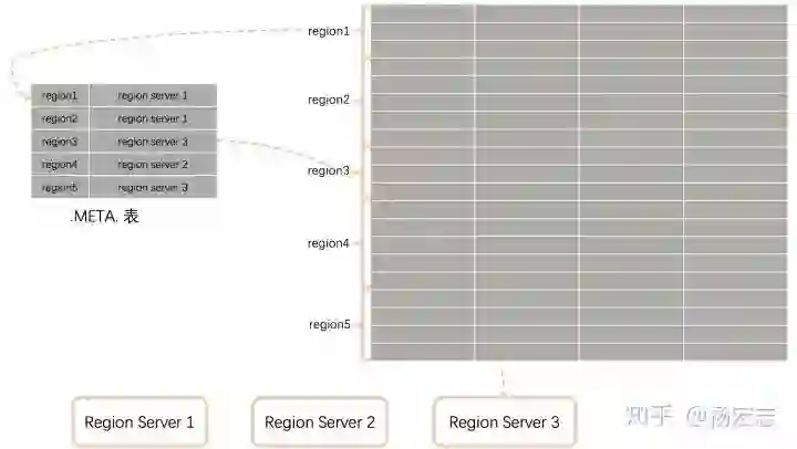 Region Server:管理这些数据的server,相当于一个MySQL实例;