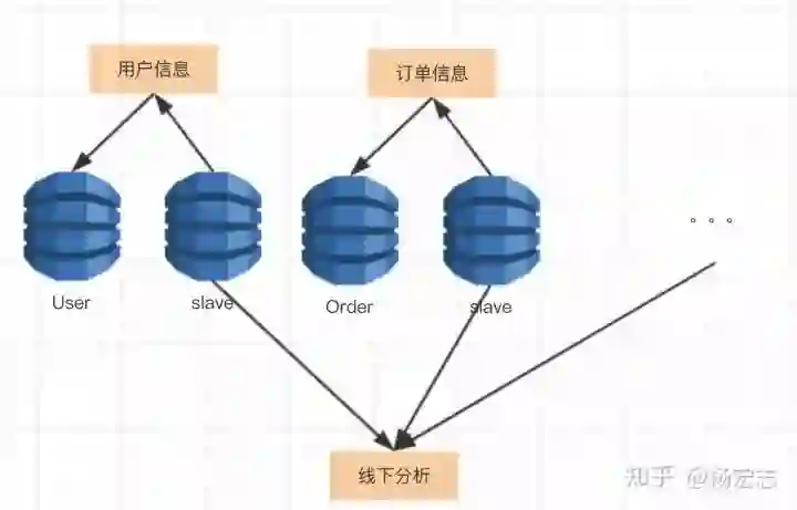线下分析,需要在业务代码里join各个表。因为拆成多个库,已经无法join了。