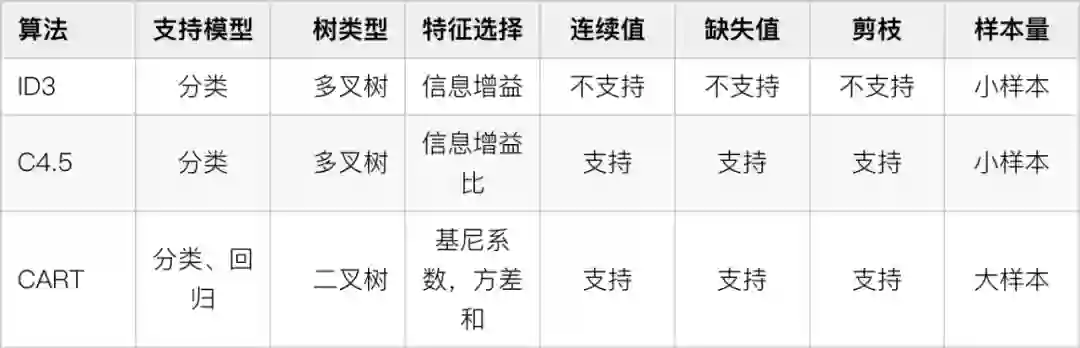 在样本量比较小的情况下建议使用 C4.5,大样本的情况下使用 CART。C4.5 需要对数据进行多次排序,处理成本耗时较高;CART 树是一种大样本的统计方法,小样本处理下泛化误差较大。