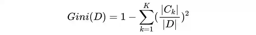 基尼指数是 1912 年意大利统计与社会学家 Corrado Gini 提出的。基尼系数(Gini index、Gini Coefficient)用来衡量一个国家或地区居民收入差距的指标,值越大表示收入越悬殊。在 CART 分类树中,采用基尼系数衡量数据集的不纯度(混乱程度),基尼系数越小说明数据不纯度低,特征越显著。