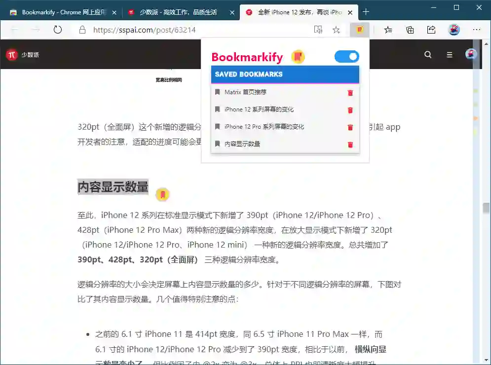 除了划水摸鱼,我们还会上网查阅一些资料、文献,或是抽时间做深入阅读扩展视野。不过有不少站点并没有对长文章做分节处理,查阅文章参考和写摘录时总要来来回回上下翻动,不仅浪费时间,还不容易找到位置。Bookmarkify 这款插件或许可以解你的燃眉之急。