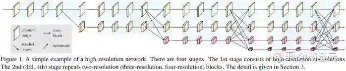 一个自然的想法就是融合高低层特征,取长补短,分割经典工作FCN和U-Net均采用了这个策略,物体检测中常用的特征金字塔网络(FPN)也是采用了该策略。为下文需要,先介绍两类融合策略,一类是FPN,先自下而上获取高层语义特征,再通过自上而下逐步上采样高层语义特征,并融合对应分辨率的下层特征;另一类是HRNet,自下而上包含多个分辨率通路,不同分辨率特征在自下而上过程中及时进行融合。