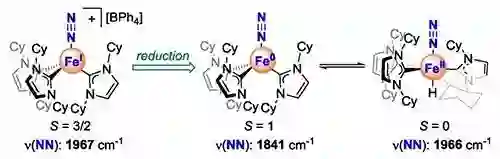 图1.氮杂环卡宾铁分子氮配合物的合成