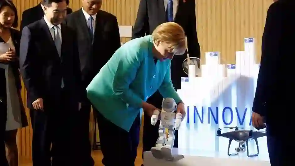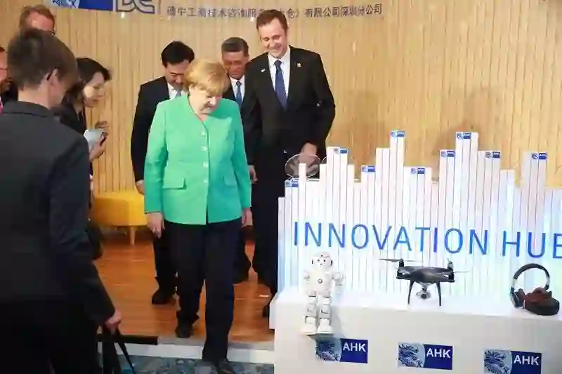 5月25日,德国总理默克尔出席德国工商会深圳创新中心揭幕仪式,德国联邦经济与能源部国务秘书鲁斯鲍姆、广东省委书记李希、广东省省长马兴瑞、深圳市委书记王伟中、中国驻德国大使史明德也一同出席了揭幕仪式,优必选Qrobot Alpha机器人作为深圳最具代表性的高科技产品之一也在揭幕仪式上亮相。