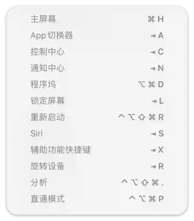 除此之外,由于「全键盘控制」将 Tab 键作为新的功能键来使用,它与字母键也就诞生了许多组合键。比如 Tab + L(Lock)即可锁屏,Tab + R(Rotate)可以旋转屏幕,Tab + N / C 则对应着通知中心(Notification Center)和控制中心(Control Center),按键与功能名称首字母相同,非常方便记忆。