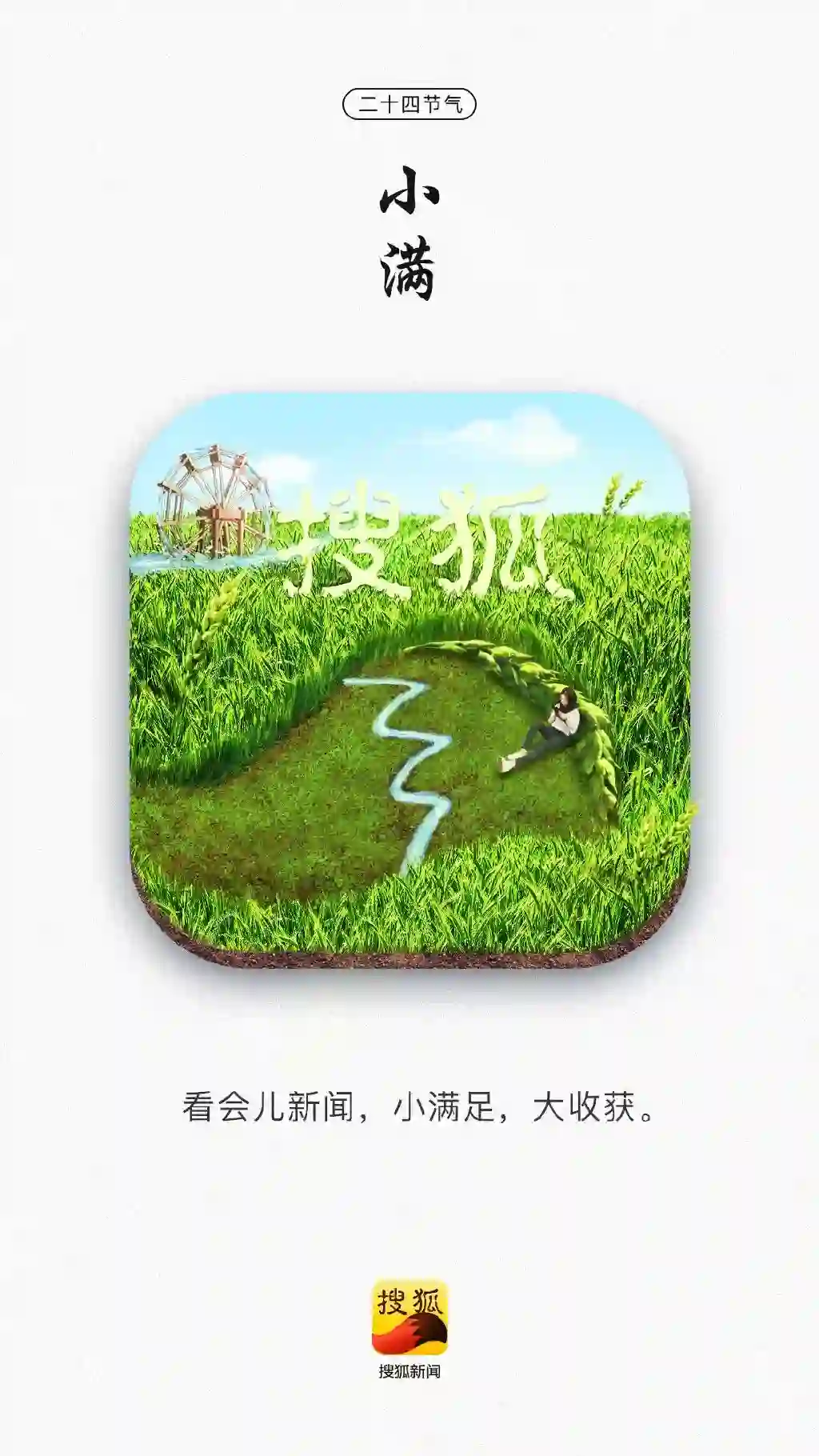搜狐新闻的海报简洁明了,文案“看会儿新闻,小满足,大收获”将节气与产品特点结合,简单易懂。