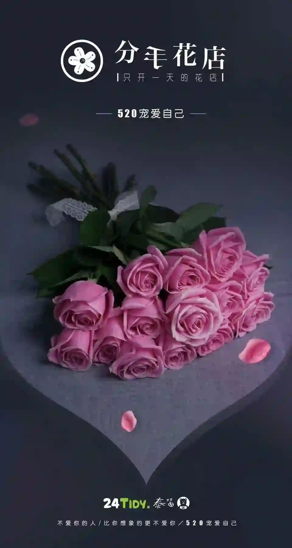 花店的宣传海报整体偏暗,文案“520宠爱自己”明确表达了花店的定位。想在520节日进行反向营销的品牌,抓准用户痛点与产品定位可不能少。