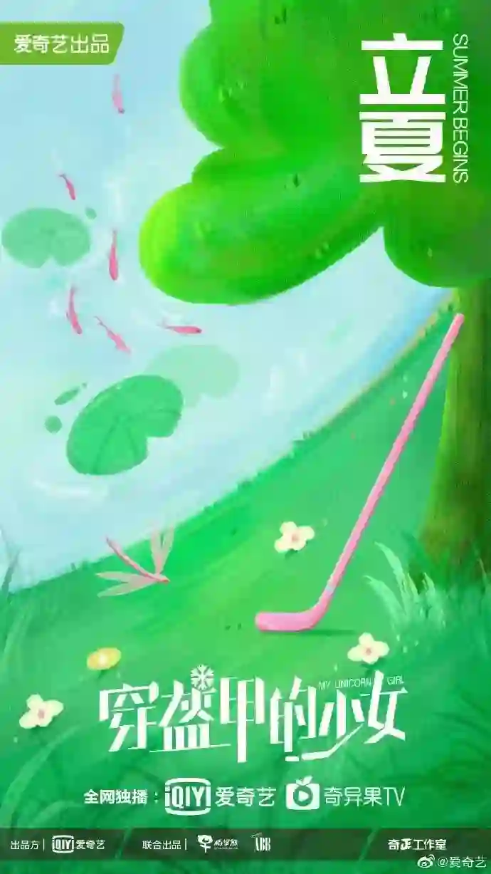 爱奇艺的宣传海报以绿色、蓝色为主色调,生长的树木与荷叶让人感受到夏天的到来。品牌的宣传海报颜色可以绿色、蓝色为主,并结合节气的植物元素。