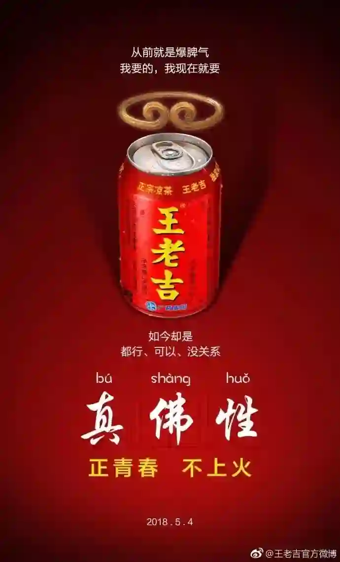 王老吉的“正青春,不上火”,把产品“去火气”的特点与当代年轻人的佛系生活态度相结合。品牌可以借鉴王老吉的宣传方式,从产品的自身特点出发,结合当代年轻人的生活方式,与用户产生共鸣。