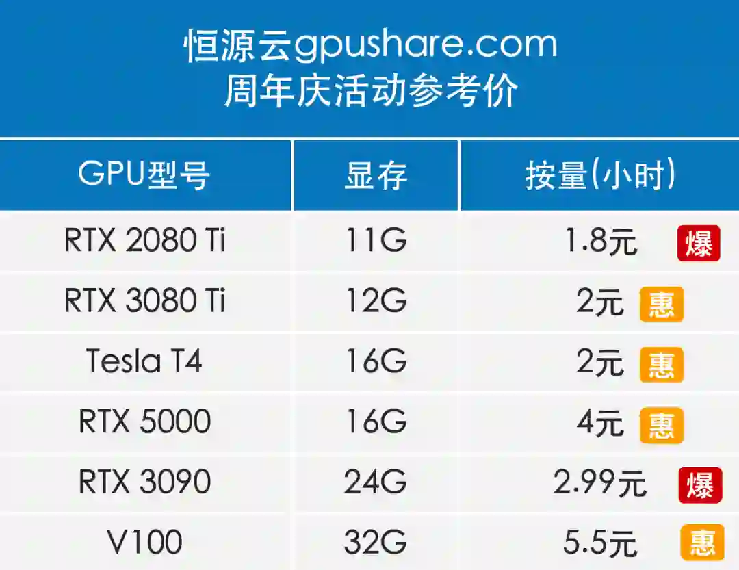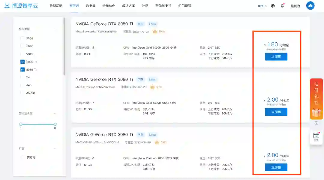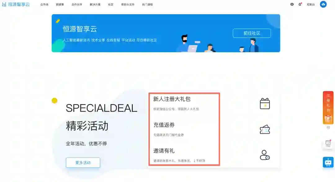 为了让大家近距离感受平台,我特意去官方公众号【恒源云】转了一圈,把最新活动汇总如下,希望对大家有用!