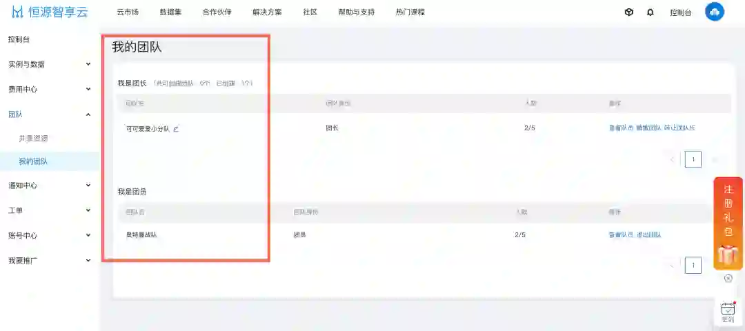 恒源云特上线了团队功能,