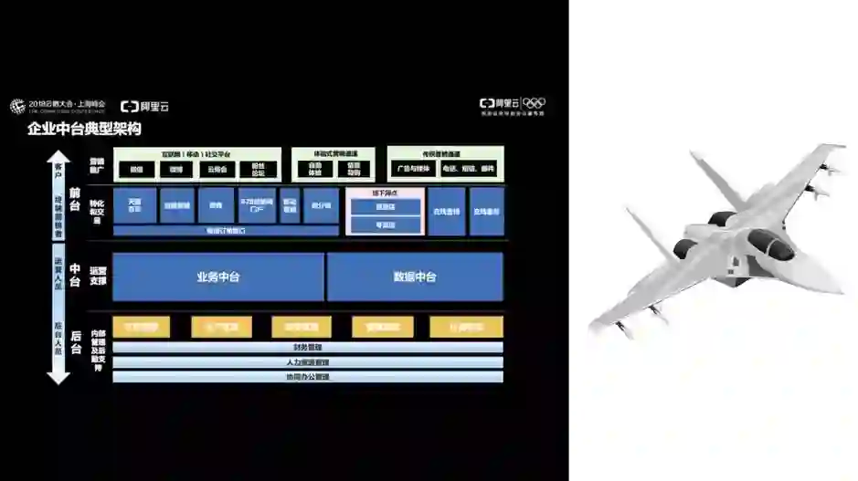 从图中可见,阿里中台主要体现为由业务中台和数字中台并肩构成的双中台,并肩扛起了所有前台业务。