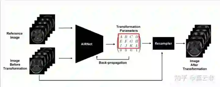 这种做法就是直接通过一个神经网络来回归变换参数(可以是变换矩阵的参数,也可以是一个形变场),相应的金标准就是真实的变换参数,可以通过手工配准得到,也可以通过其他配准方法得到。这种方法的弊端主要在于金标准不好做。