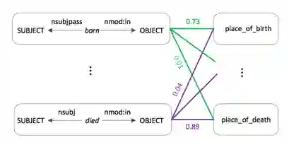 可以看出,表述为born的句子可以被映射到place_of_birth上,虽然训练集中存在错误标签(place_of_death)的问题,但在全局统计的角度看,错误标签占比比较小。因此,全局共现信息可以有效地突出正确标签。