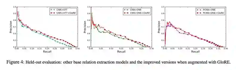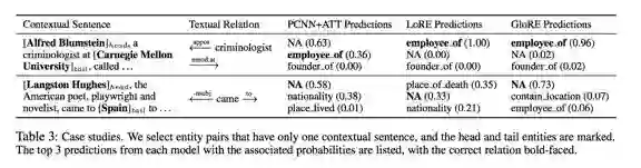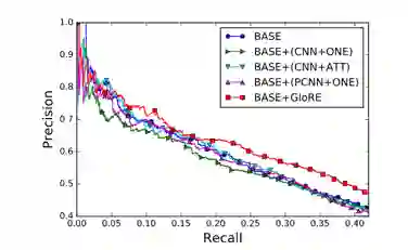 最后,本文用同样的PCNN+ATT作为BASE模型,用不同模型作为叠加,证明了GloRE的加成效果最好。