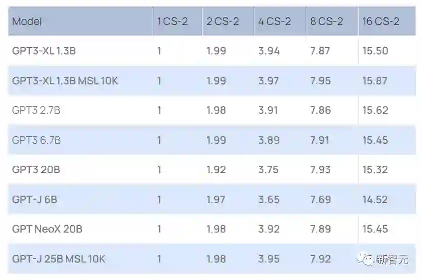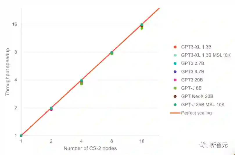 这意味着,在集群中每增加一台CS-2计算机,整体的训练时间会以近乎线性的趋势减少。