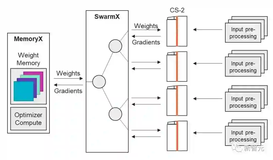 最终,SwarmX 可以将CS-2 系统从2个扩展到192 个,鉴于每个 CS-2 提供85万个 AI 优化内核,Cerebras 便可连接 1.63 亿个 AI 优化内核集群。