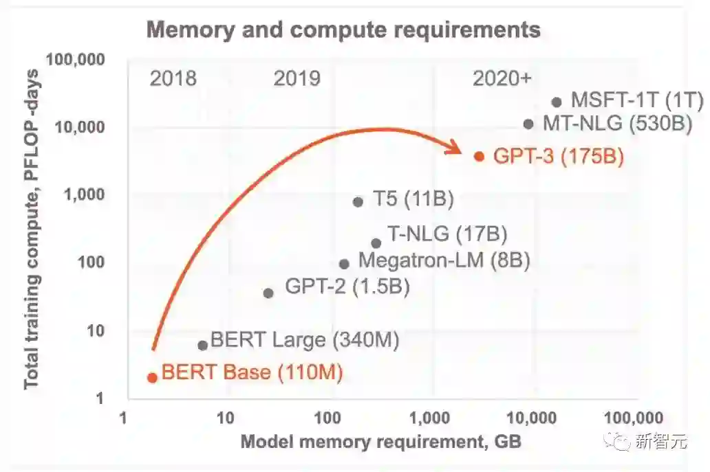 如此庞大的模型会遇到算力瓶颈问题,系统需求已经远远超出了单个计算机系统的处理能力。单个GPU的内存约为16GB,而GPT-3等模型所需的内存往往高达几百TB。