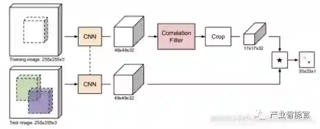 类似于面部验证的概念,利用孪生网络可以在一条线上的目标框内输入图像,并且在另一条线上输入候选图像区域,然后输出两个图像之间的相似度。我们不需要遍历不同帧中的所有其他候选区域;相反,我们可以使用卷积网络,只需要将每个图像前馈一次,通过卷积,我们可以获得二维的响应图,其中最重要的响应位置确定了框的位置。基于孪生网络的方法非常快并且能够处理任何大小的图像。