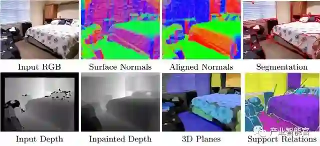 纽约大学也建立了一个RGB-D数据集,提出了通过检测三个正交表面法向量并结合RGB进行区域生长算法,实现室内场景的语义分割与物体空间支撑关系推断。