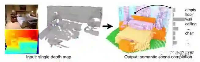 此外,斯坦福大学也提出了根据单帧深度图像实现语义分割与分类识别并通过3D voxel的形式表示的算法。