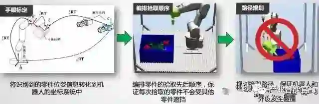 并不是获得零件的位姿信息后就能马上进行零件的拾取,这仅仅只是第一步,要成功拾取零件还需要完成以下几件事: