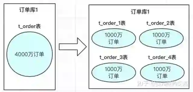 上图中订单数据达到了4000万,我们也知道mysql单表存储量推荐是百万级,如果不进行处理,mysql单表数据太大,会导致性能变慢。使用方案可以参考数据进行水平拆分。把4000万数据拆分4张表或者更多。当然也可以分库,再分表;把压力从数据库层级分开。