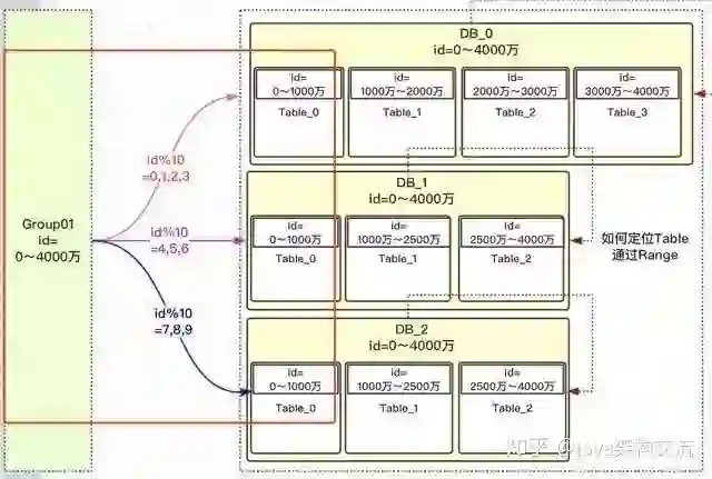 注意:千万不要被DB_1或DB_2中table的范围也是0~4000万疑惑了,这个是范围区间,也就是id在哪些范围内,落地到哪个表而已。