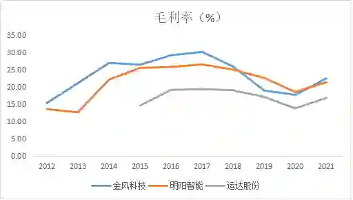 在盈利能力方面,短期来看,以业务结构较为相近的金风科技、运达股份、电气风电三家公司作为对比,2021年,明阳智能的收入、净利润规模及毛利率仅次于金风科技,但远高于运达股份、电气风电。