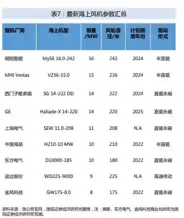 既然风机大型化是海上风电产业降本的核心,那么大容量便是体现海上风机产品竞争力的主要指标之一。