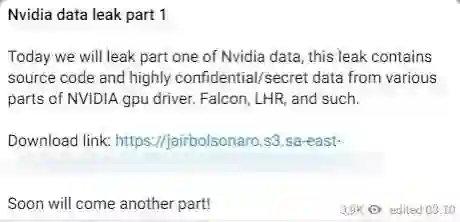 Lapsus$称手头数据有250G是英伟达硬件相关的。
