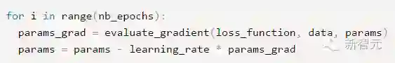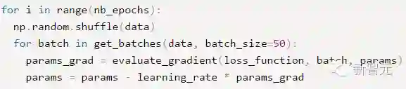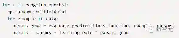 epochs 是用户输入的最大迭代次数。通过上诉代码可以看出,每次使用全部训练集样本计算损失函数 loss_function 的梯度 params_grad,然后使用学习速率 learning_rate 朝着梯度相反方向去更新模型的每个参数params。一般各现有的一些机器学习库都提供了梯度计算api。如果想自己亲手写代码计算,那么需要在程序调试过程中验证梯度计算是否正确。