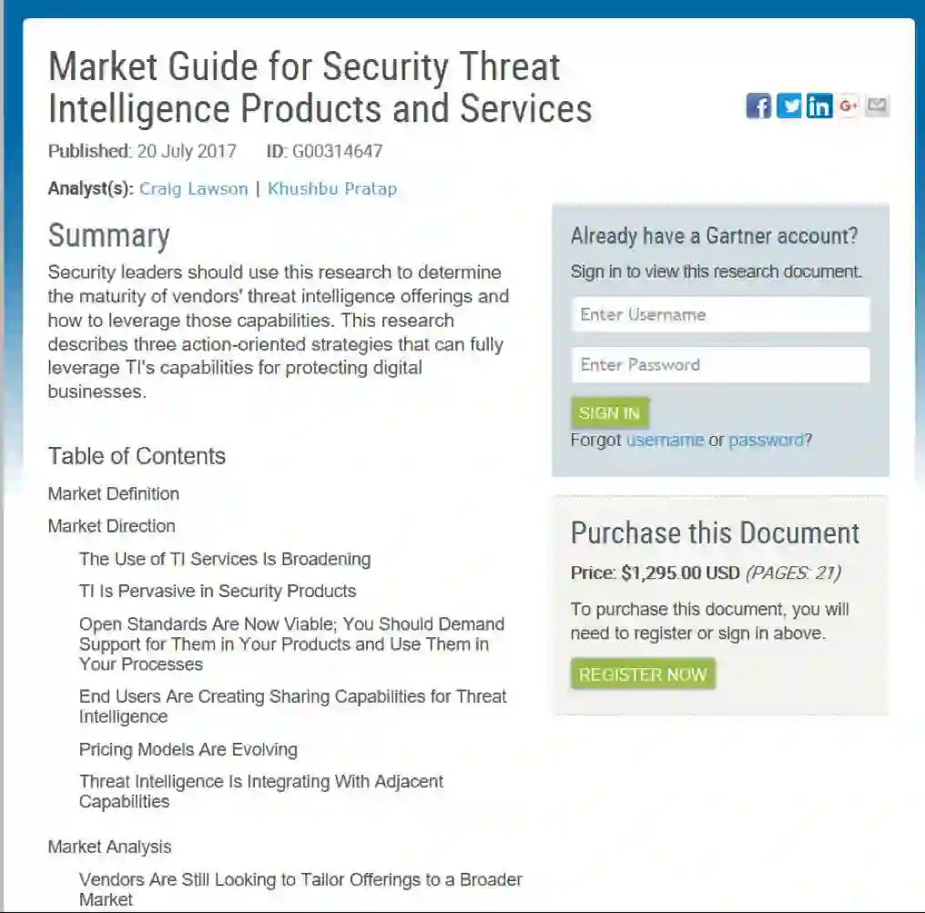 Market Guide for Security Threat Intelligence Products and Services