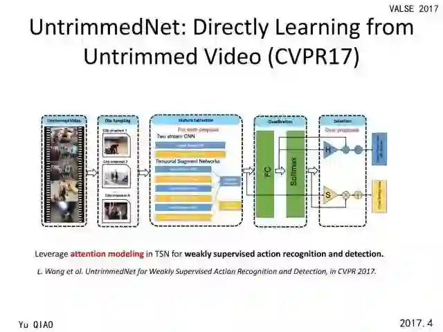 这个工作把TSN网络推广到弱监督的识别和检测,视频中许多时间段并不包括我们感兴趣的行为,这个方法把注意机制用于非截断视频行为的识别与检测。