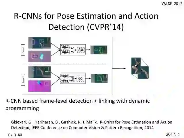 除了视频的识别之外,视频中的行为检测也是一个非常重要的问题,这个问题很大程度上是跟随物体检测方法的进步。较早的时候,就是伯克利的一个组把RCNN也运用到视频检测中,通过动态规划的方法把RCNN检测的框连接起来。