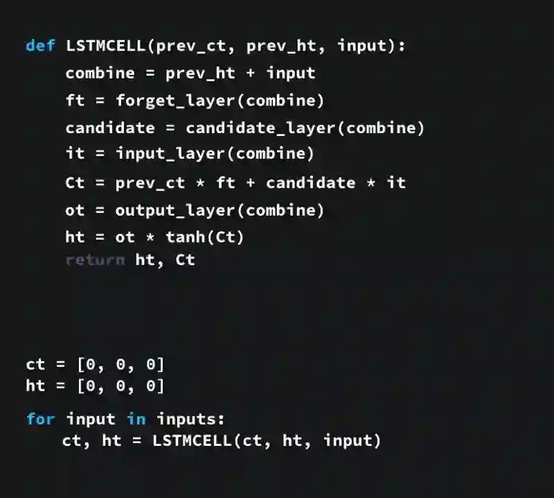 如上所述,LSTM网络的控制流程不过是几个张量操作和一个for循环而已。