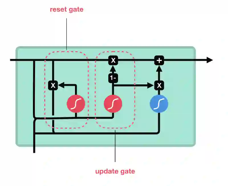 更新门的作用类似LSTM的遗忘门和输入门,它决定要丢弃的信息和要新添加的信息。