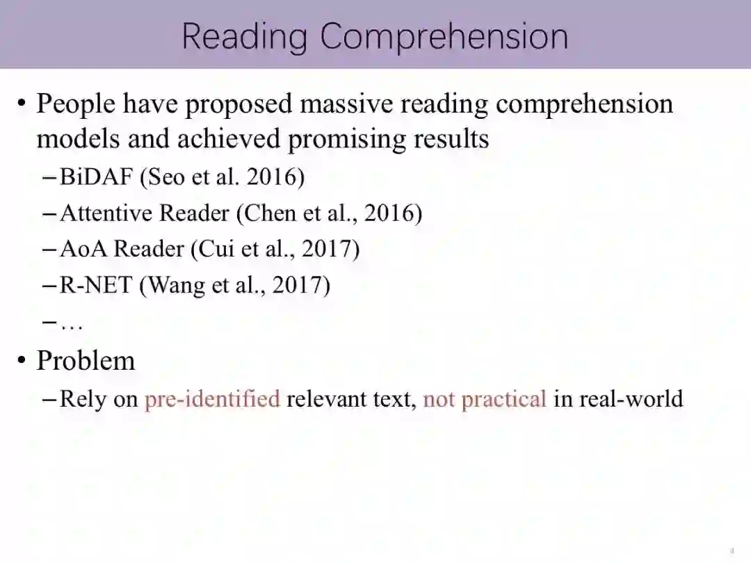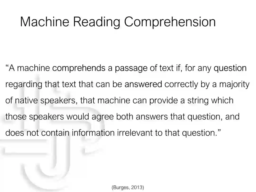 机器阅读理解是现今问答技术发展的核心之一。在本次报告中,我将从认知的角度介绍机器阅读理解的发展以及和人类阅读理解的关联和区别。