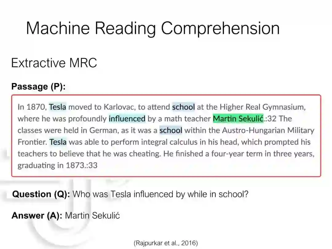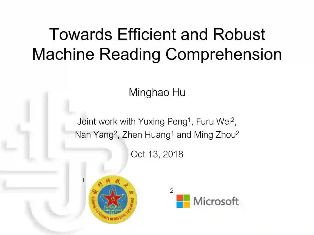 近年来,抽取式机器阅读理解任务取得了显著的进展,最顶尖模型的性能甚至超过了人类。然而,当前方法却存在着效率低下、易受对抗样本攻击和无法拒绝给出答案等问题。在本报告中,我们将介绍如何利用知识蒸馏技术来提升阅读理解系统的效率和鲁棒性,并且讨论一个阅读+验证的框架来检测问题是否可回答。我们期望上述探索能够进一步增强阅读理解系统的实用性。